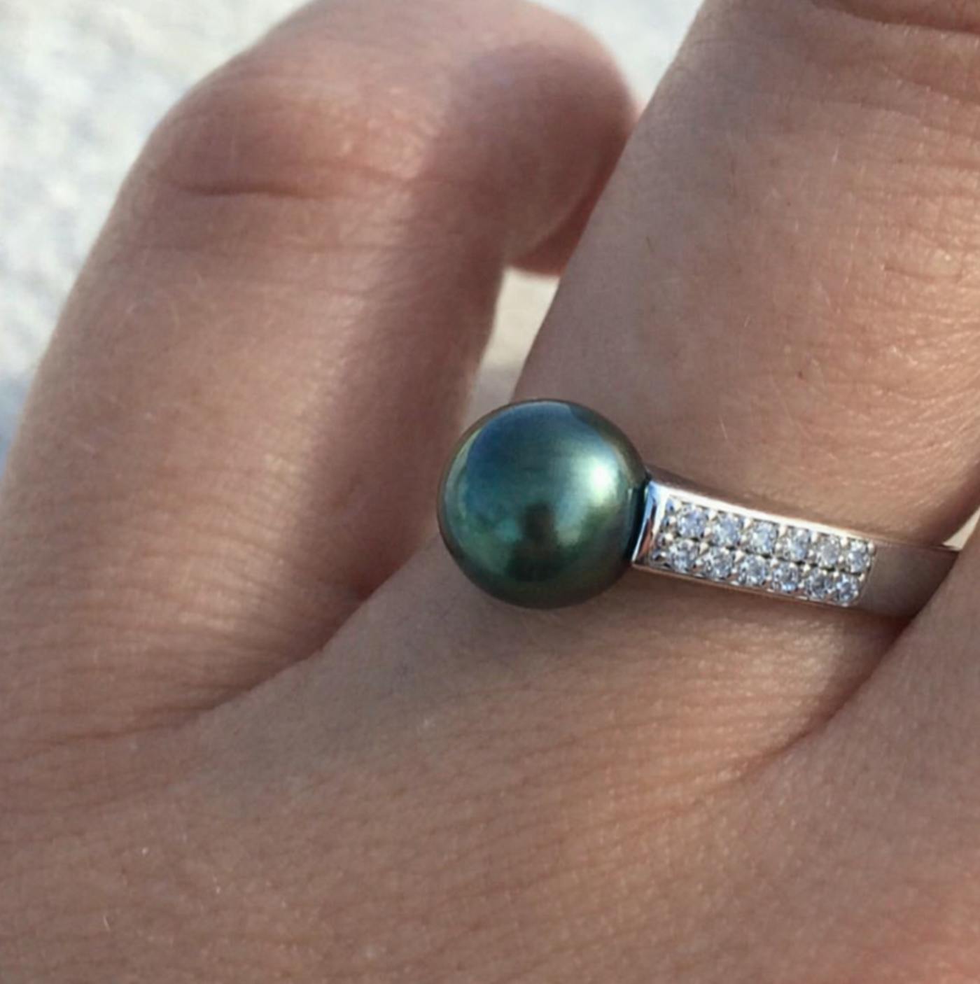 The pearl has such a deep, dark glow it feels mysterious and luxurious. The ring looks incredibly refined on the hand.