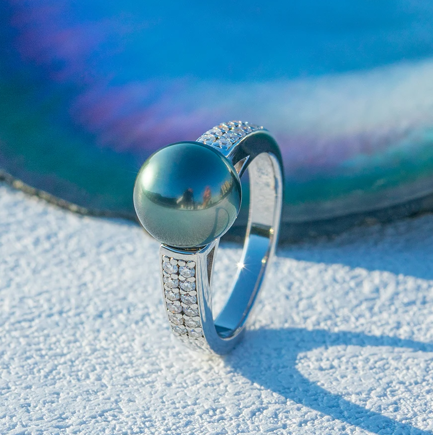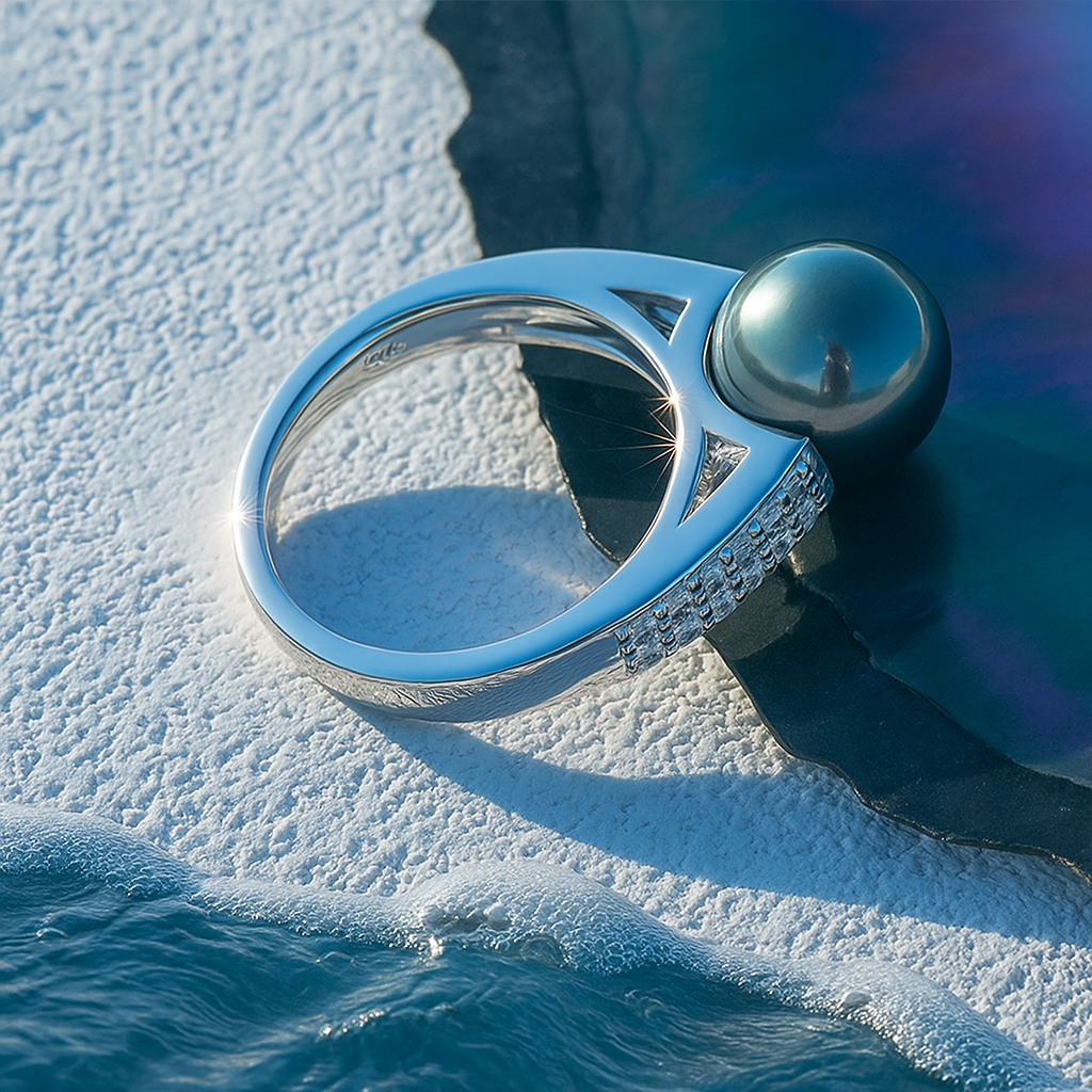 Discover the unique beauty of our Tahitian Pearl Collection , where bluish-green hues and iridescent luster meet modern design. Hand-selected for their deep ocean tones and set in dazzling pavé Moissanite, each piece is a bold yet refined statement of luxury.